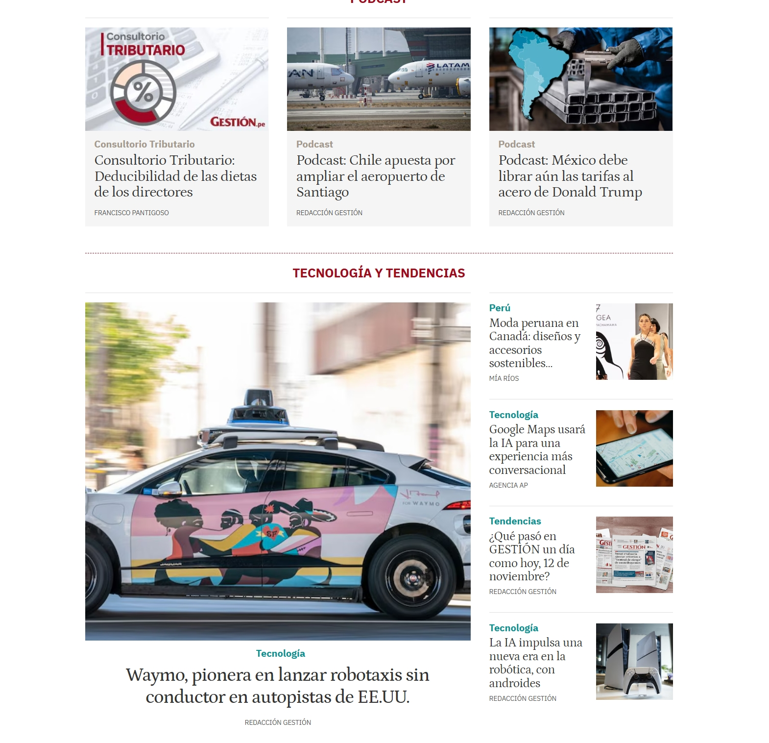 El Comercio 是秘鲁最具影响力的新闻网站之一,成立于1839年,至今已有超过180年的历史。作为该国的主要新闻平台之一,El Comercio 提供全方位的新闻报道,涵盖政治、经济、文化、体育等领域,成为秘鲁及拉美地区最权威的新闻源之一。网站每天更新,致力于为广大读者提供最新的全球时事与本地新闻,特别关注秘鲁社会、政治及文化变迁。